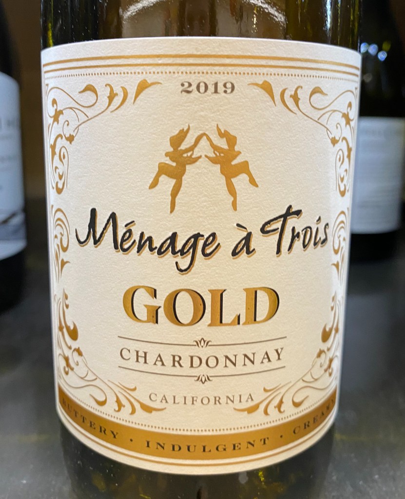 Ménage a Trios from California, is liquid gold indeed. I have to say the name is a tad off-putting, and in the past I had hesitated to purchase it because I am a respectable wine drinker! Still, the wine is really good, and if this gimmicky thing that the marketers have going on works for them, great. However, they may want to consider a sister wine under a classier label for an uptick in sales and broader wine audience. Label aside, I give this one three butter sticks!!! It is sooo buttery!