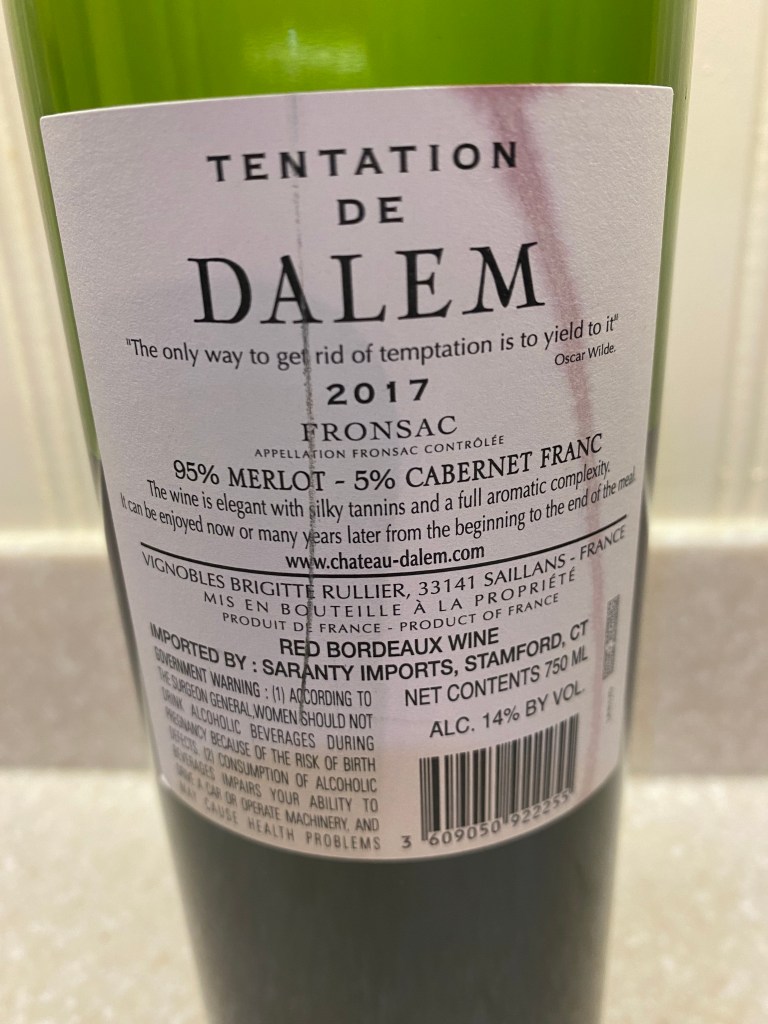 I recommend allowing the wine to breathe. The color is black as night. The nose is heavy with oak. It tastes of dark cherry, rich plum, and a walk in the woods on an Autumn evening. It’s as dry as the desert, so have a glass of water handy.