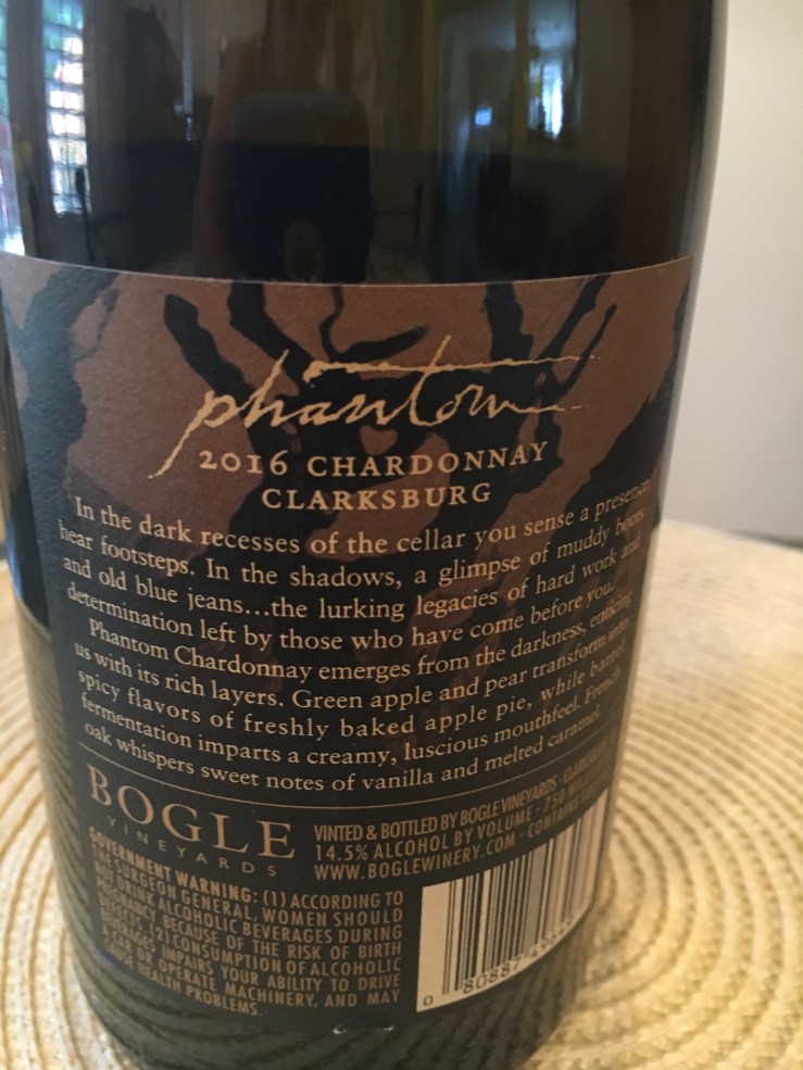Bogle Chardonnay is one of my all time favorite wines, so when the makers of Bogle introduced Phantom I just had to try it. If you are a Bogle fan I think you will enjoy it. It has all of the wonderful richness and flavors of Bogle, the butter, caramel, vanilla and ripe melon and it may be a slight cut above Bogle Chardonnay.