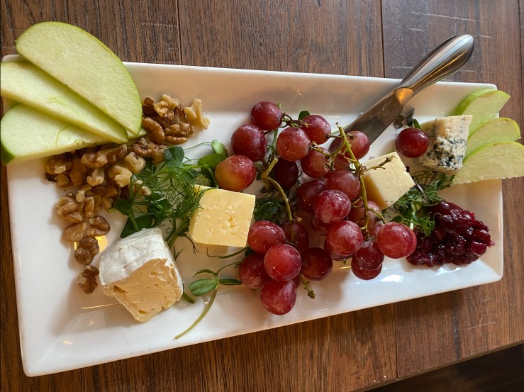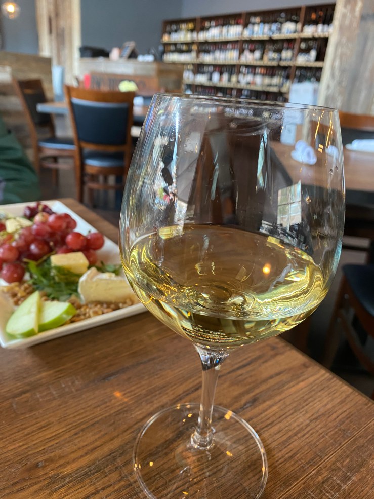 It has a pale, golden color, and is light, with medium body, and a clean finish. I tasted oak, lemon, almond, and crisp green apple. It paired well with the fabulous cheese plate we ordered.