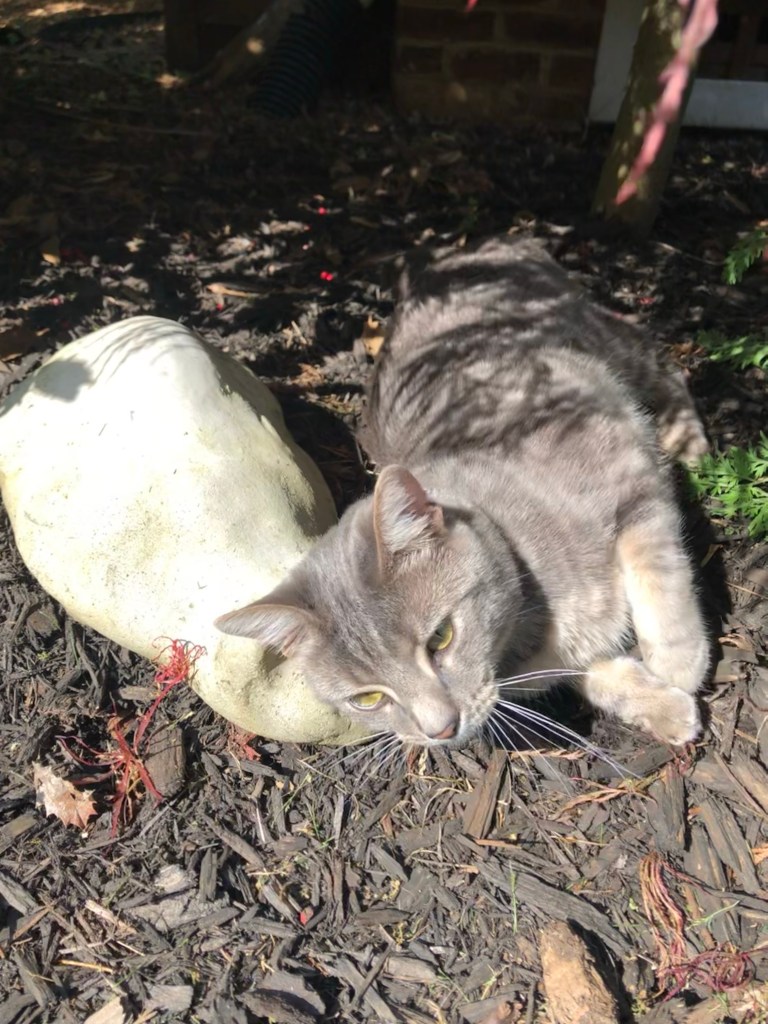 He had his first debut on ‘NextDoor’ as a “lost” cat. He was still in his own neighborhood but decided to glean some sympathy or some free food, I’m not sure which!