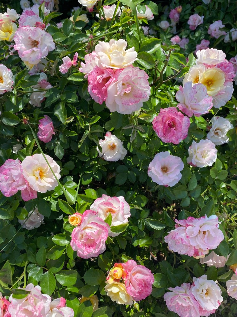 The answer is that roses and grape vines share a similar temperament. The roses help signal potential issues for the vines. They are similarly affected by pests, mildew, weather and all of the challenges growers face when tending their vines.